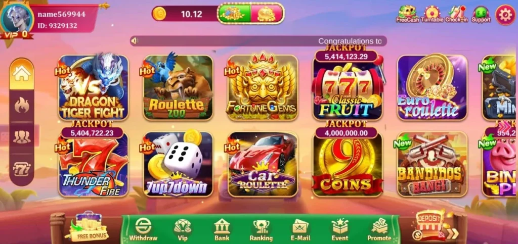 - Wide Variety of Games: Enjoy multiple gaming options, including slot machines, spin-the-wheel games, and card games, all in one platform for a more exciting and diverse experience.